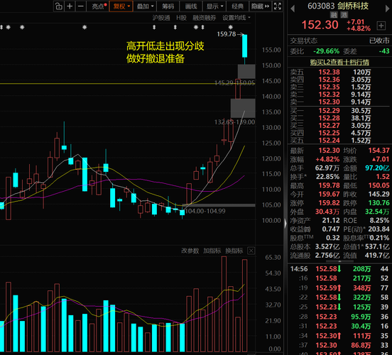 剑桥科技昨天高开低走,量放的很大,不过好在留下了缺口。CPO上周走的很强,昨天不少标的都有了放量滞张的迹象,那么是不是意味着这个板块要开始调整了呢?剑桥科技的主要罗辑是补张,它的订单量和行业隆头相比肯定是远远不如的,所以在板块里面属于跟风的角色。所以如果明天板块开始走回调了,坊主认为就必须要考虑做好兑现的准备了。$剑桥科技(SH603083)$