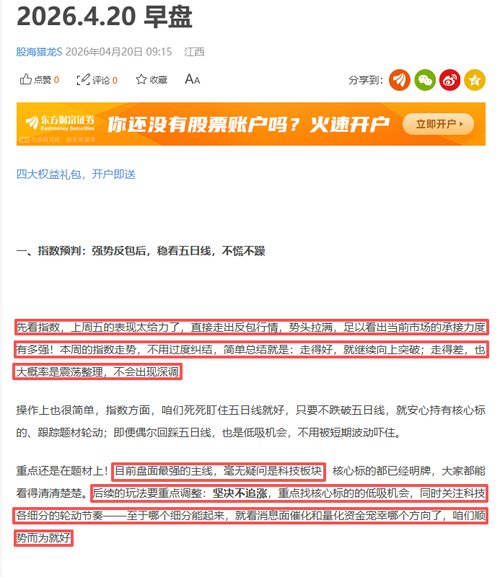 一、个人操作 今作很明确,没有多余折腾,完全跟着早盘思路来:果断卖出剑桥科技,及时止盈落袋,随后顺势开仓西部材料,精准踩中航天板块的轮动节奏,操作不拖泥带水,贴合盘面推演方向。 二、复盘盘前思路 由于今天有点事早盘没发出来,没有注意在这里给大家道个歉,对不起 其实上周五我就自己反复推演过盘面节奏:光模块板块上周五已经全面爆发,短期涨幅透支,周一大概率很难延续强势,分歧是必然的。当时就一直在思考...