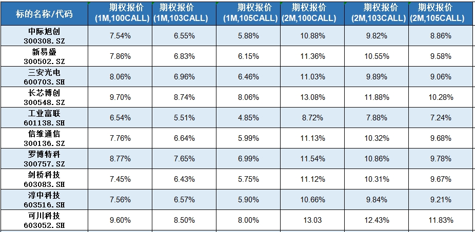 1.17日场外个股期权报价打卡:每日热门个股报价,更新1M/2M、平值(100%)/浅虚值(103%-105%)看涨期权隐含波动率报价(仅当时参考有效) -哪只票的波动率超出了你的预期? -你觉得市场对哪只票的短期波动预期最乐观? 场外个股期权仅对持牌机构客户开放,个人投资者无法直接参与 本文仅分享市场数据,不构成任何投资建议~ 了解更多个股标的期权费率报价或细则留言