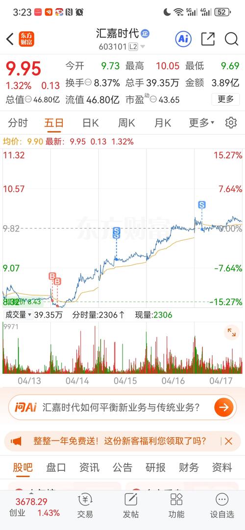 $汇嘉时代(SH603101)$叫你掉两分你掉五分