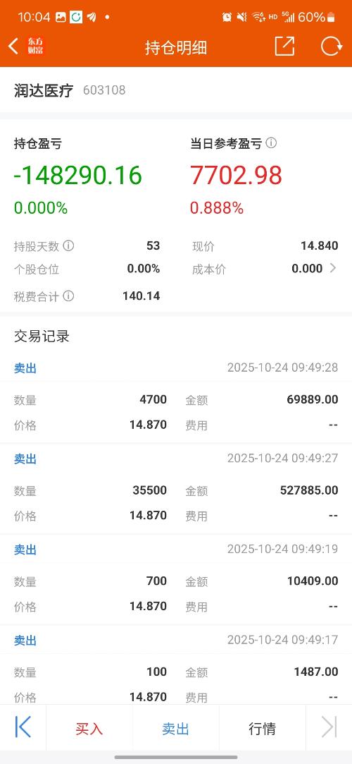 $润达医疗(SH603108)$割了。。。,留下的发财