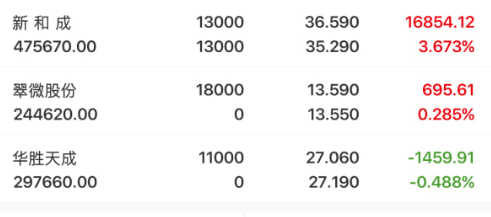 $新和成(SZ002001)$$翠微股份(SH603123)$$华胜天成(SH600410)$ 持仓股分析(不构成投资建议,仅供参考) 新和成(002001): 是维生素,蛋氨酸双龙头,双碳&绿色化工:政策鼓励低碳工艺、生物制造,公司全产业链节能、副产物综合利用,能耗低于行业18%,享受政策倾斜。周四在买,今天还在买,周五跌到35.9元就拉回来了,下面有资金托底,跌不深。资金根本没走,就是借震荡洗...