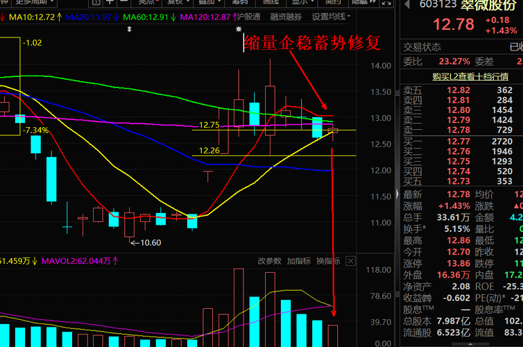 $翠微股份(SH603123)$尾盘小亏割了,这种量跟日K见得多了,短期包跌的