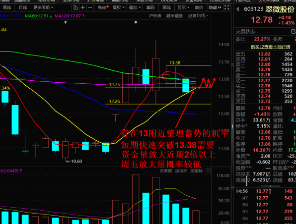 $翠微股份(SH603123)$十日线磨了两天弱就一个字