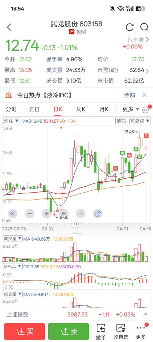 $腾龙股份(SH603158)$今天又红不了啦!早上冲高没跑,郁闷!
