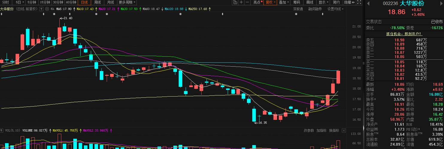 4月15日收评:大华股份、寒锐钴业、腾龙股份