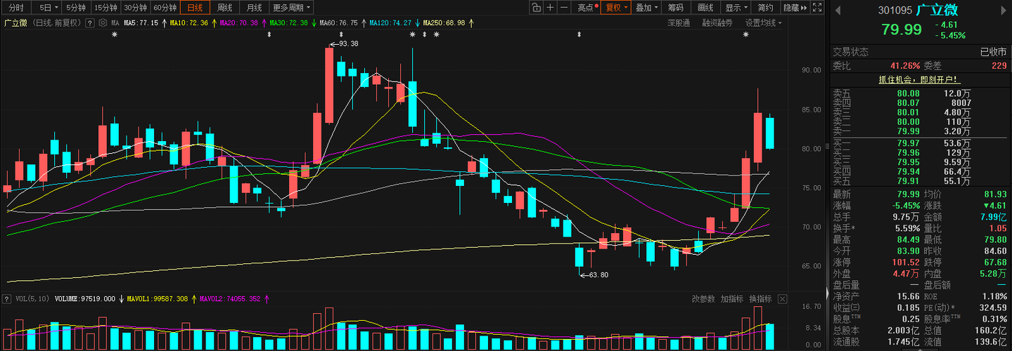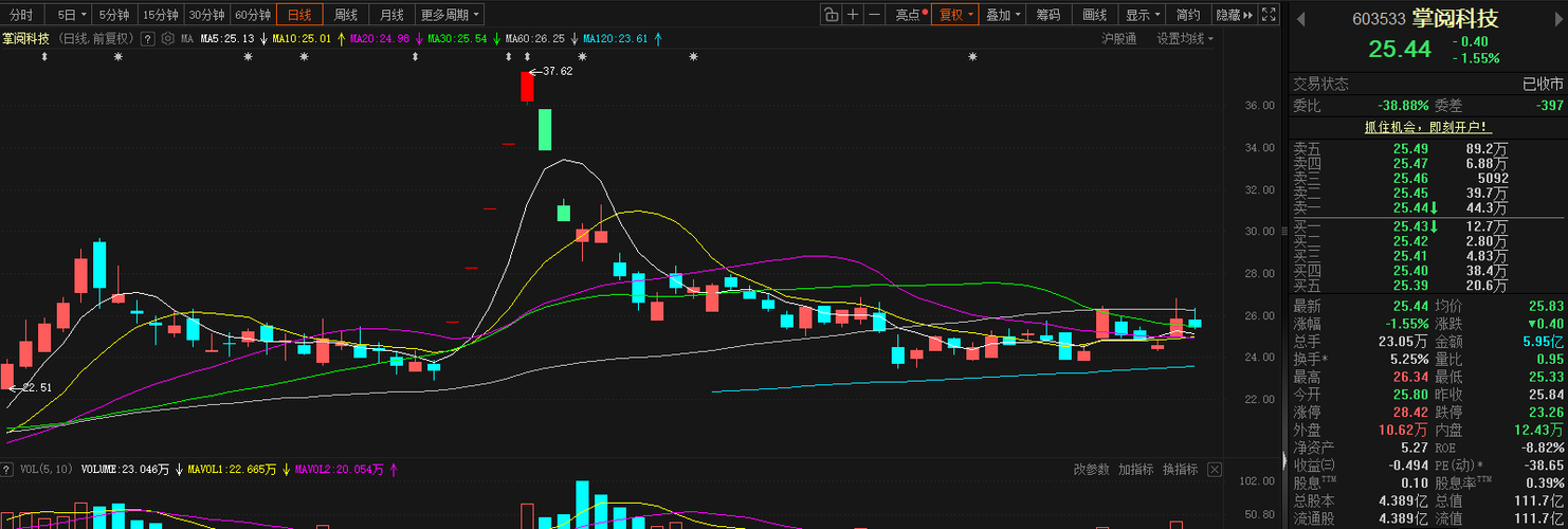 今天尾盘十分钟主力进行的护盘是很明显的,我想主要目的是将收盘价恒定维持在均线之上,这种防御性控盘动作怎么解读?既可能是为第二天的高位派发做掩护,也可能是为不让趋势走坏为后续的进一步拉升做干预,所以不好明确下结论,要观察明天的开盘。今天尾盘先行清仓了,当然这个不一定正确,只是个人基于风险控制优先原则,也考虑大盘有回调迹象。继续持仓的也不用担心,观察明天开盘,主力仍然控盘很强!