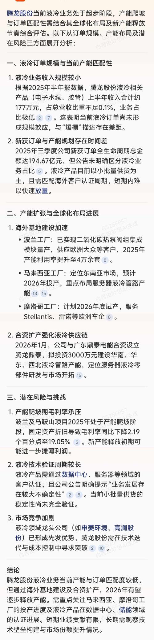 $腾龙股份(SH603158)$网传年内液冷收入大增,金属管路已小批量供货手机与汽车代工巨头。去年年底产能落地,今年一季度试运行阶段,完成产能爬坡到良品率