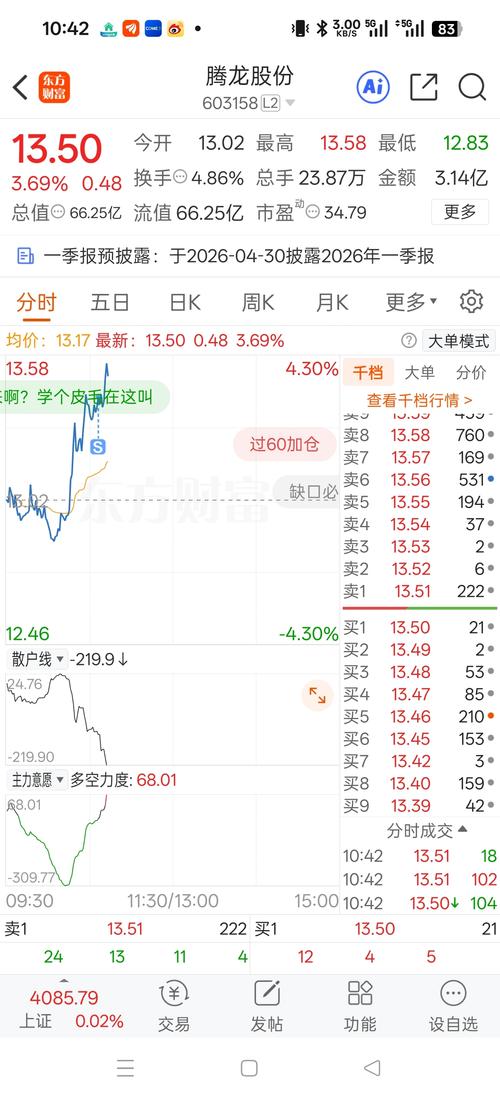 $腾龙股份(SH603158)$虽说能到80,但总有曲折的,先走等年报我再回来