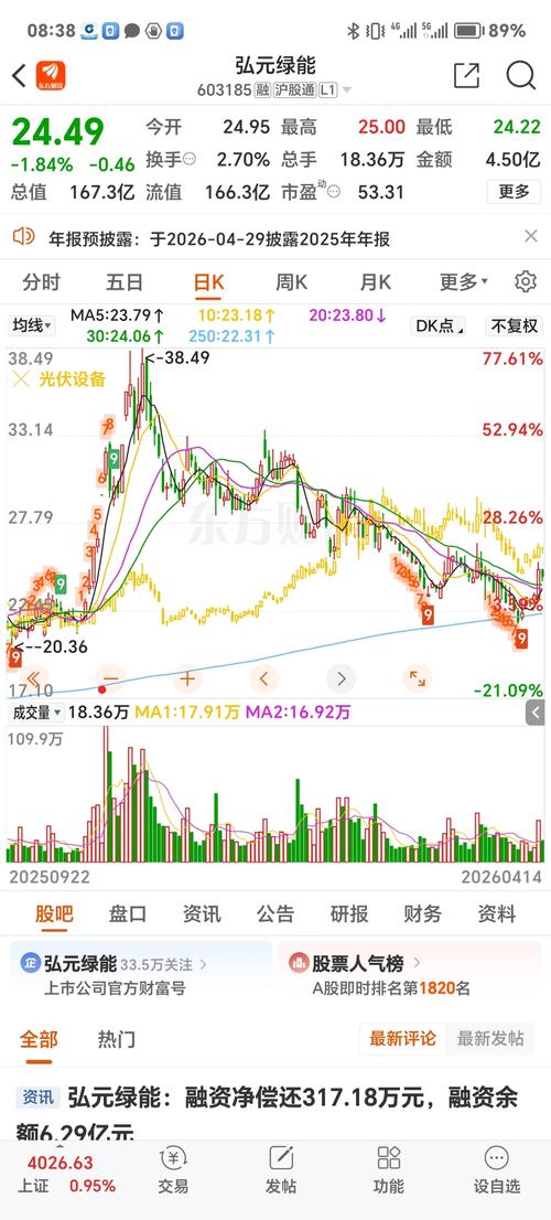 资讯 弘元绿能:融资净偿还317.18万元,融资余额6.29亿元