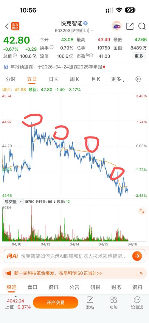 $快克智能(SH603203)$这是涨两天要跌两周的节奏去了