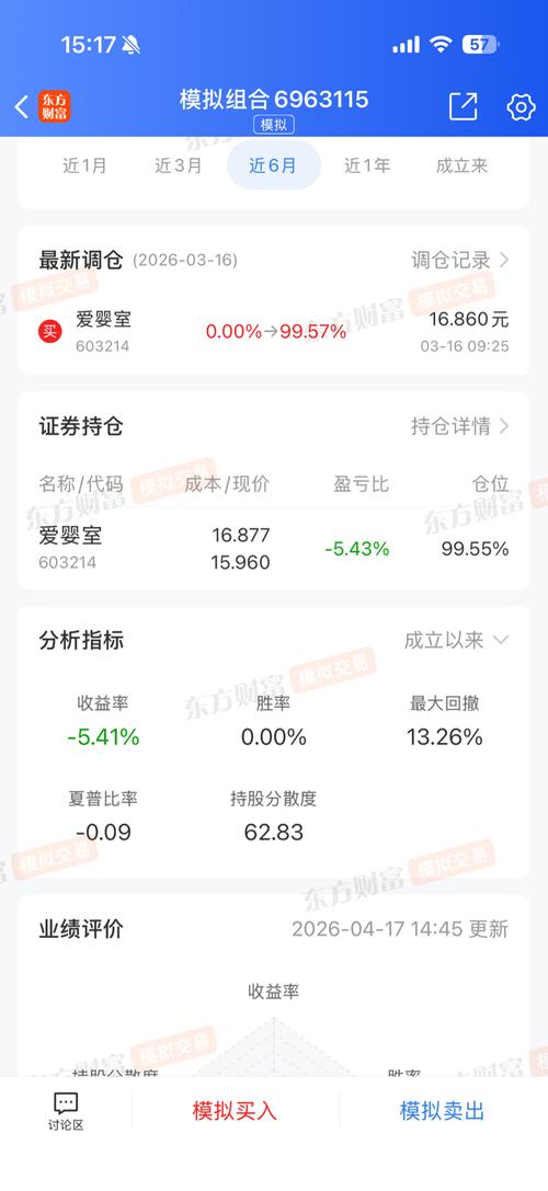 $爱婴室(SH603214)$3.16建的模拟盘,全仓爱婴室