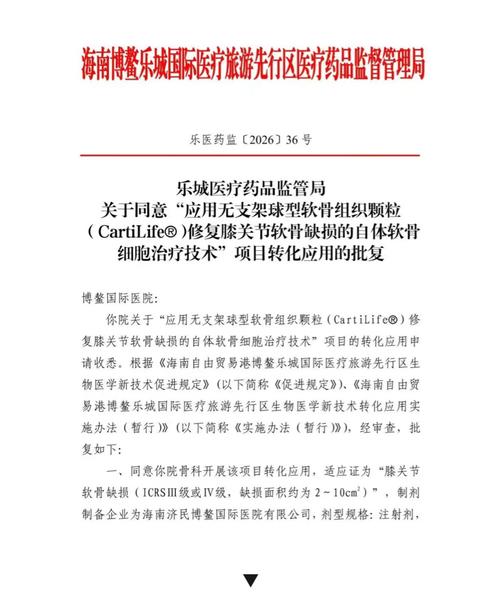 资讯 创新药械“先行先试”再落一子 济民健康旗下博鳌国际医院自体软骨细胞治疗技术获准转化应用
