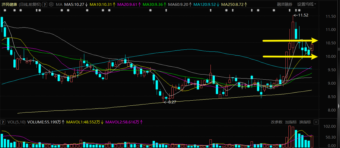 $济民健康(SH603222)$下午突破10.39,明天就能站稳11