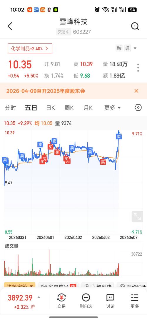 $雪峰科技(SH603227)$感谢/又给低点9.92加满了