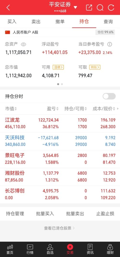 介入!景旺电子$景旺电子(SH603228)$ 持有!湘财股份$湘财股份(SH600095)$ 出!长芯博创 持有!江波龙$江波龙(SZ301308)$ 持有!天沃科技 我将用真实账户记录每一天的操作,用行动见证翻倍之路! 我相信,实盘就是最好的证明。只要稳扎稳打,终会一路高歌猛进! 希望各位股友多多支持,点赞富一生,评论518 我们一起发! 特别声明:本内容为个人实盘记录,不构成投资建议,更不鼓...