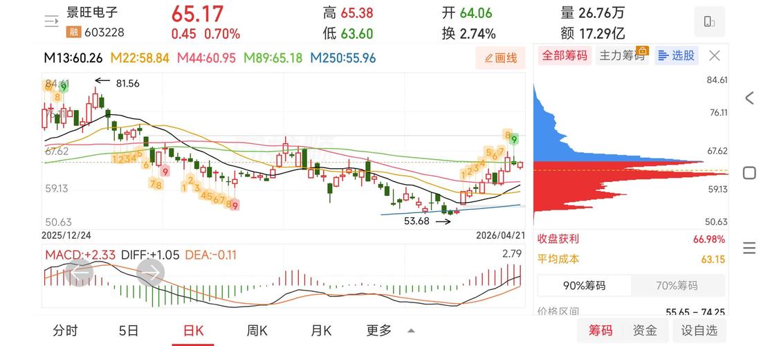 $景旺电子(SH603228)$景旺今天收在65.17,整体还算稳,但强度明显还是不如最核心那几只。它现在的定位还是比较明确,就是PCB方向里的跟随和补涨,适合在主线继续扩散的时候看,但如果主线开始往核心票收缩,它就容易掉到后排。今天它能稳在65附近,说明这票暂时还没掉队,但往上继续打空间的力度暂时也没完全出来。后面对它来说,65这一带先要守住,往上看66附近能不能继续突破;如果后面板块继续回暖,...