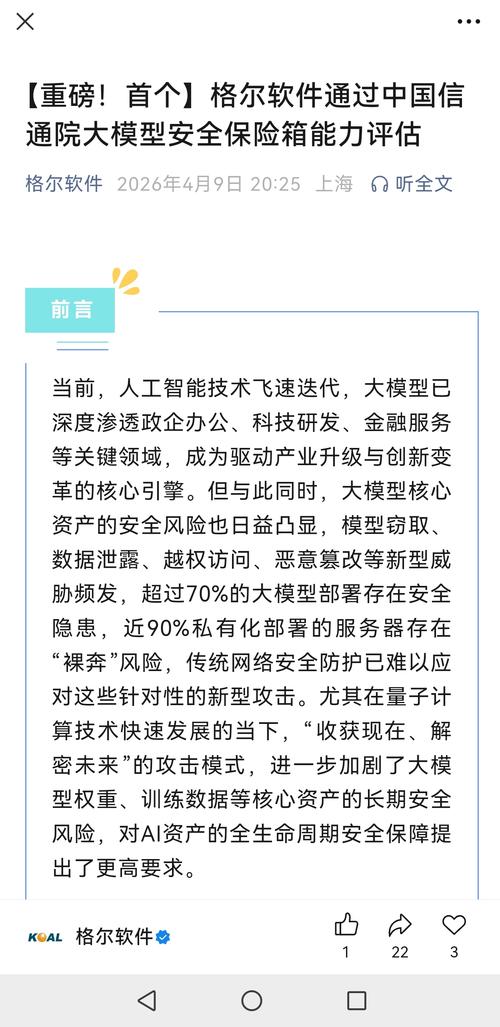 $格尔软件(SH603232)$【重磅!首个】格尔软件通过中国信通院大模型安全保险箱能力评估
