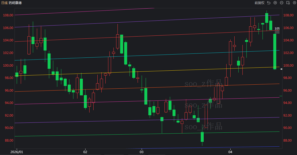 今天是26年4月21日下午15点。药明目前运行在108.75的向下一笔回调中。这一笔要跌倒哪里,目前我不好判断,但有几个点需要大家注意。一是,上周五那个大阴线跌的又快又急,还放量了,这个阴线跌幅在6个点,是最近半年来当日跌幅最大的一天。二是,从2025年9月见115高点之后,这是第五次上攻被打下来了,说明这股里有赃东西,不想让散户跟着一起赚钱,赃东西想吃独食。三是。如果上周五大跌是你们说的主力洗盘...