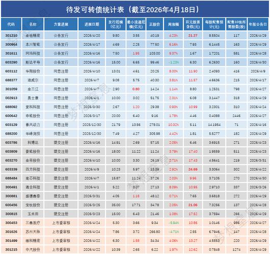 待发可转债统计表(截至2026年4月18日)—可转债发行提速,发债公司表现强势