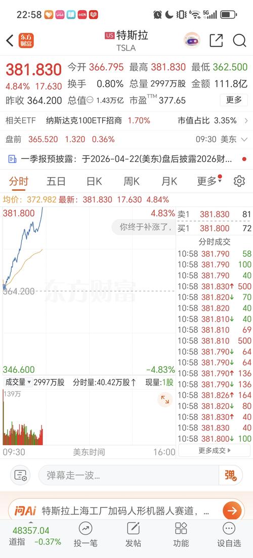 特斯拉暴涨啊,你明天不涨说不过去吧