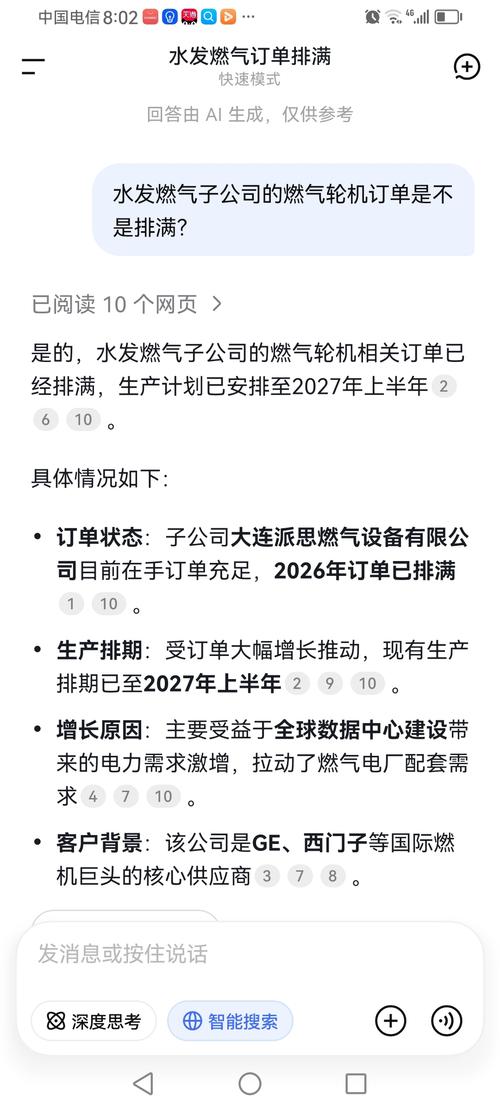 资讯 水发燃气:公司装备制造业务的订单增长得益于公司产品在燃气发电领域的竞争优势,也包括AI数据中心建设带来的燃气发电需求