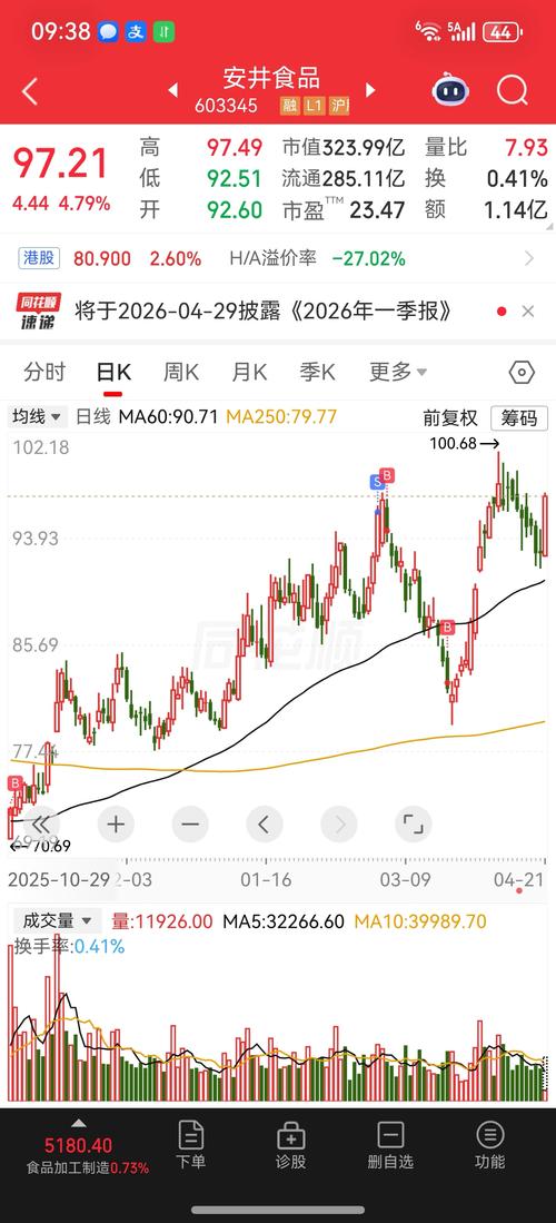 $安井食品(SH603345)$93卖95接回,还以为会涨停