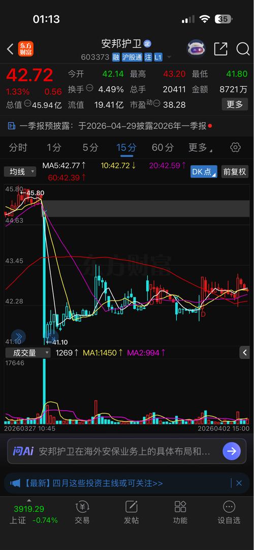 $安邦护卫(SH603373)$关键位置价格在43.12过43.12才可能有一波