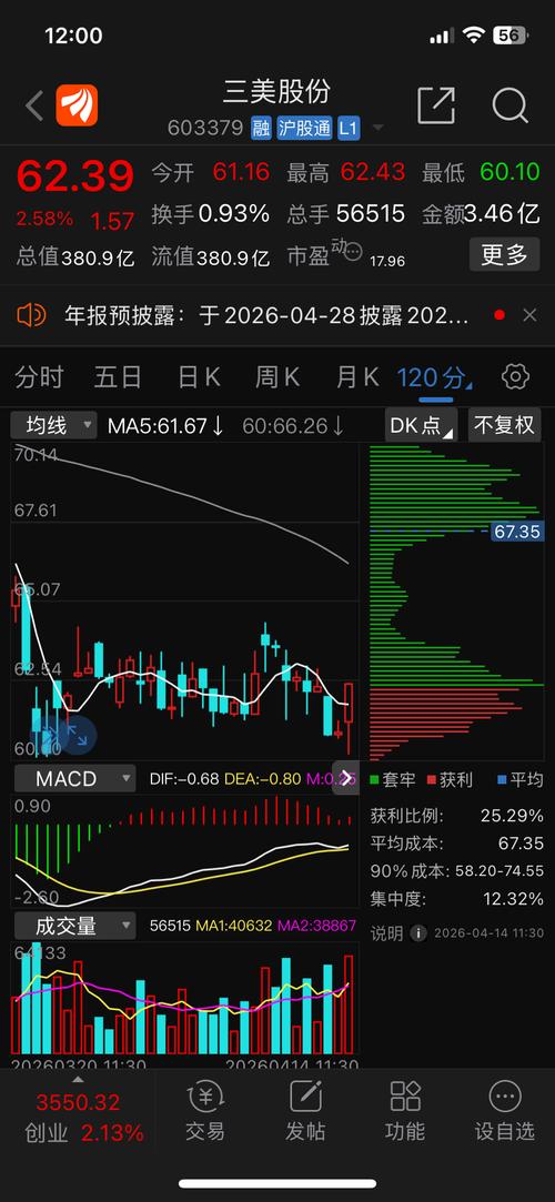 $三美股份(SH603379)$2026.4.13号三美股份:年报净利润增幅155%以上,ROE26,PEG0.5以下,复合增长率50%以上,PETTM21,现在买很划算。 今日看中的生益电子,年报预增300%,拉的太快了,不追了。 今日买入三美成本61.52,仓位82。