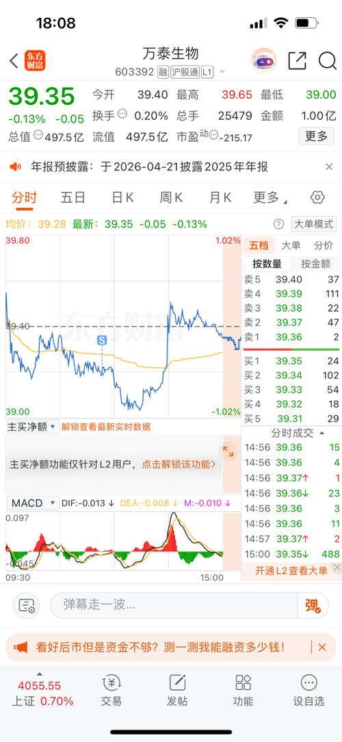 $万泰生物(SH603392)$39.11买的500股,39.41卖掉了。