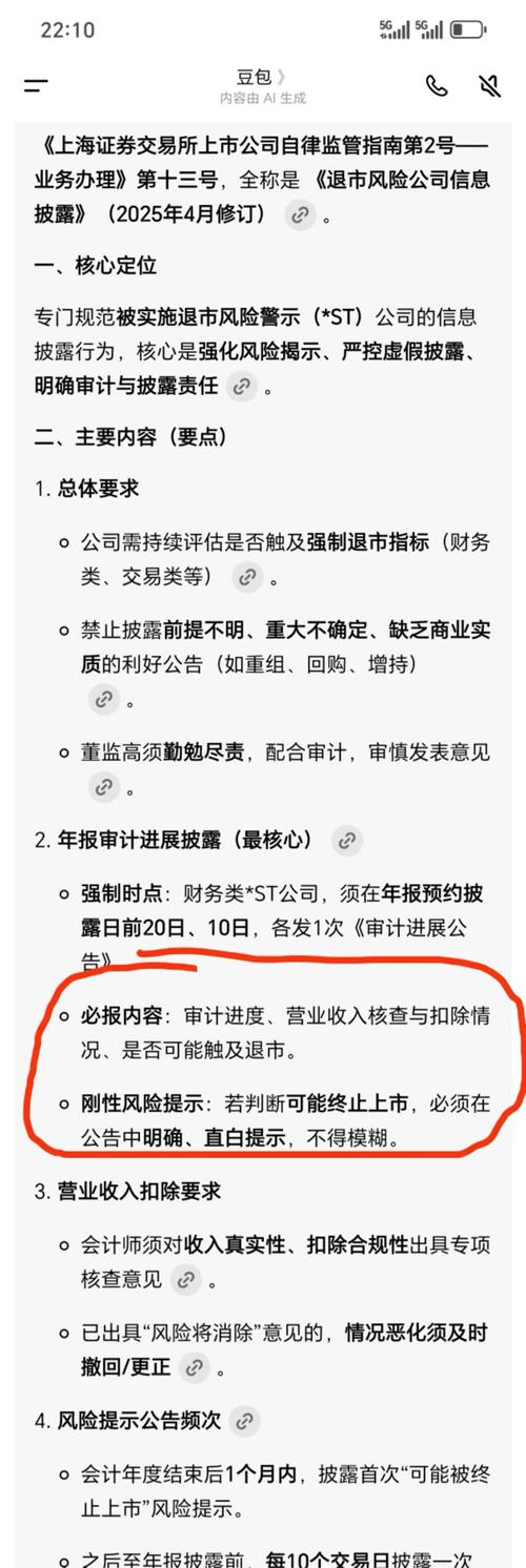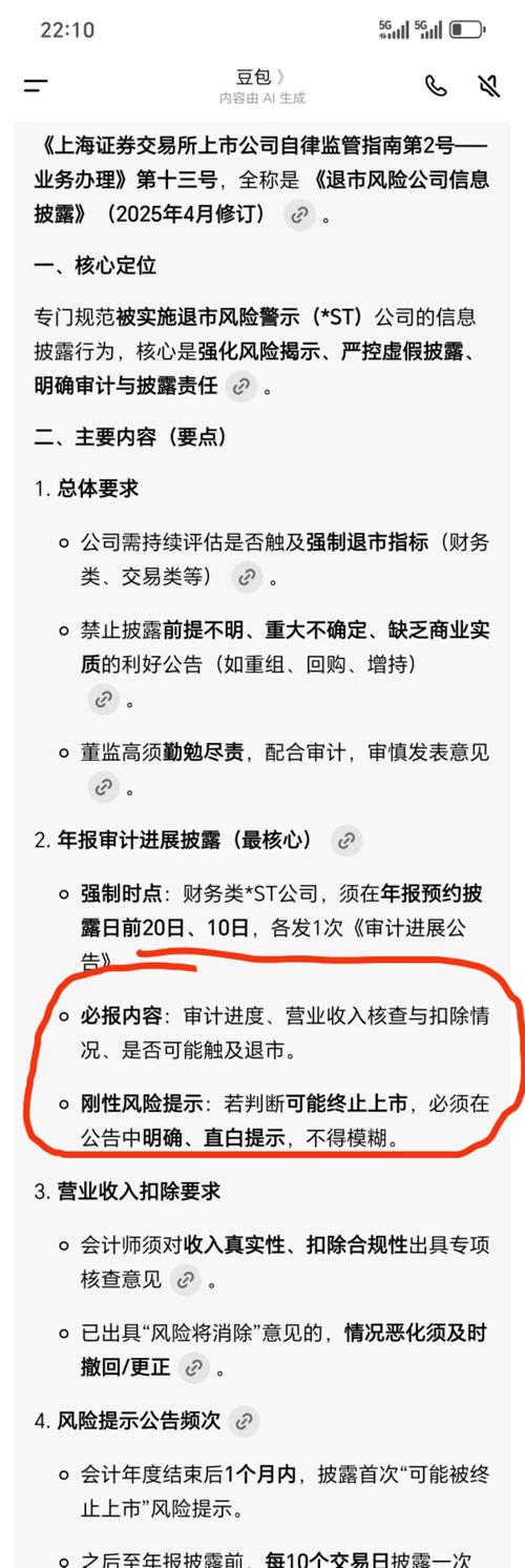$*ST沐邦(SH603398)$这个票还是有些风险的,虽然立案调查不触及退市,但今天的年度报告编制及最新审计进展有点还妙。 沐邦是带星的st,一旦25年年报出来是非标就退市了,小心为上。不带星的st还有一年时间,如$ST岭南(SZ002717)$,营收没到3亿或非标就是星st岭南。 今天公告说了截止本专项说明出具之日止,经初步审计,非标意见涉及事项尚未消除,想验牌的兄弟要小心了。