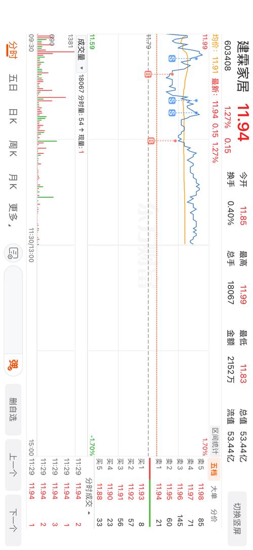 $建霖家居(SH603408)$昨天尾盘应收11.81(量化集合意愿收11.83-11.84)被某散户砸竞价收11.78,那么今天可能会小高开11.81上