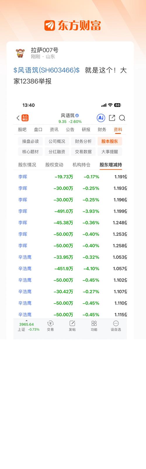 $风语筑(SH603466)$今天12386举报了,明天继续进步