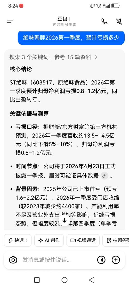 $ST绝味(SH603517)$,明天就要出季报咯,玩下豆包,看看它到底准不准