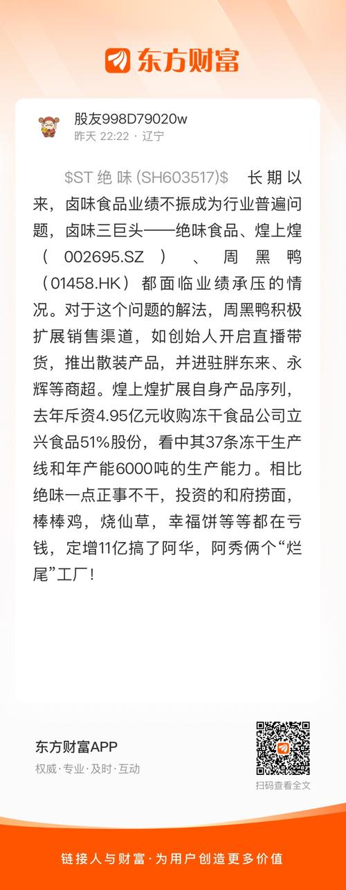 $ST绝味(SH603517)$广汇再挣点买绝味