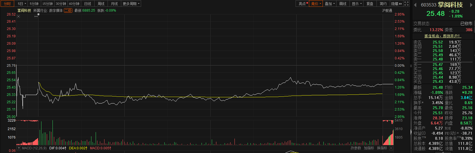 $掌阅科技(SH603533)$高开低走了估计,连续三天出现上影线,说明上方抛压重,主力资金在上方出货,不过有利好,估计能高开一下,高开低走做t