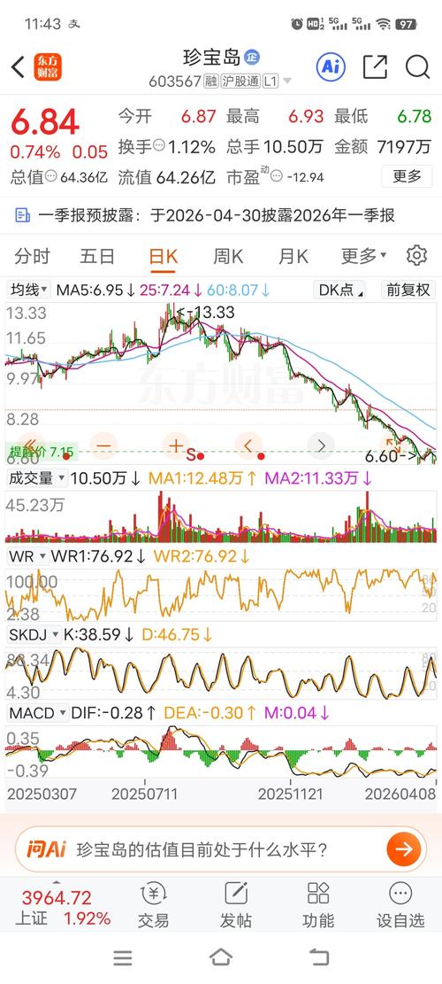 长期来看,珍宝岛市净率0.88,股息率2.21%提供安全边际,显示公司仍处盈利修复期。医药行业受人口老龄化与政策支持驱动,中药Ⅱ板块近期表现稳健,为个股提供行业beta机会。若公司加大产品创新或成本控制,估值修复空间可观。