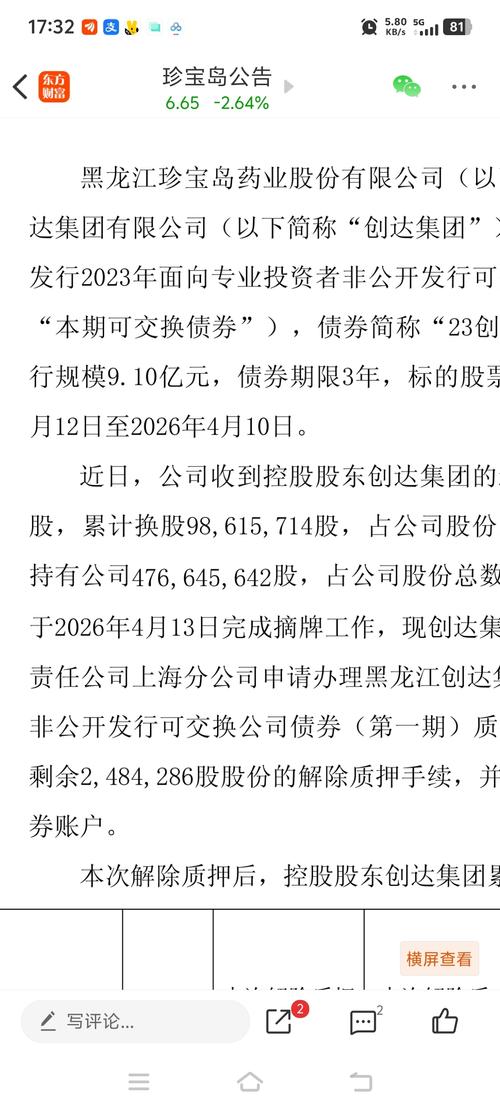 $珍宝岛(SH603567)$一期可交债今天如期摘牌。预期之中的9.1亿的债券全部完成换股,(之前说不会换股的出来走两步吧)大股东的持股比例差不多也降到了50%左右,现在的持股比例还是挺高的,大股东的质押也下降至78%,股东人数又增加至31000多人,最近一段时间过来抄底的散户太多了,短期可能要横盘一阵子了