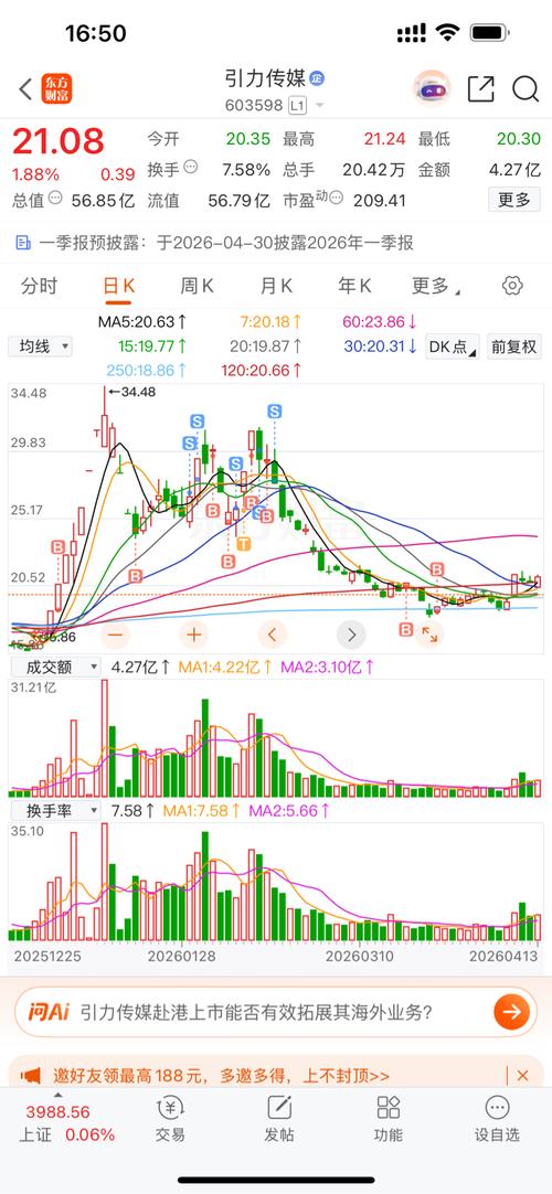 $引力传媒(SH603598)$21.04跑了,尾盘再看接不接