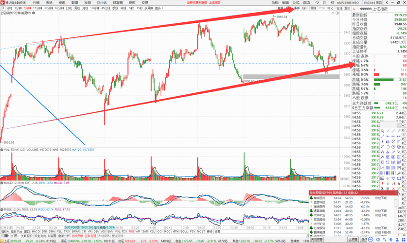 原以为昨天夜盘外盘的上涨可以带动今天的A股,可惜川普再次一句话带崩整个市场,其表示近两周还会加大对伊朗的打击,受此影响,日韩股市早盘红盘开盘直线下杀,大A这次也未能独善其身,除了消息面的影响,技术层面我们昨天也说过了,5分钟级别震荡走势确有回调需求。下午2点以后,指数在回调到昨日跳空高开缺口和5分钟上涨趋势下轨时开始异动,并带来了一波小反弹,说明还是有抄底资金在博弈3900点的反弹的。 板块方面,...
