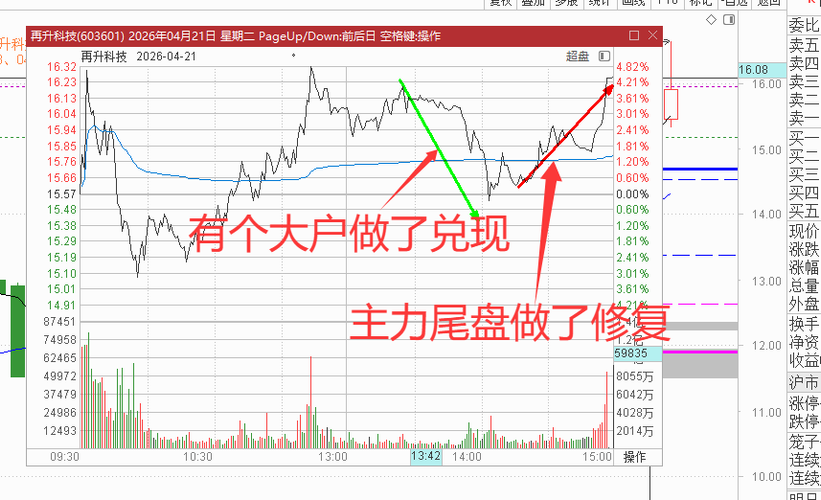 $再升科技(SH603601)$这两天做t爽过头了,太顺了,昨天低点加仓,尾盘拉高把前天获利的出了,今天开盘15.40加仓,拉高红盘把昨天低点进的出了