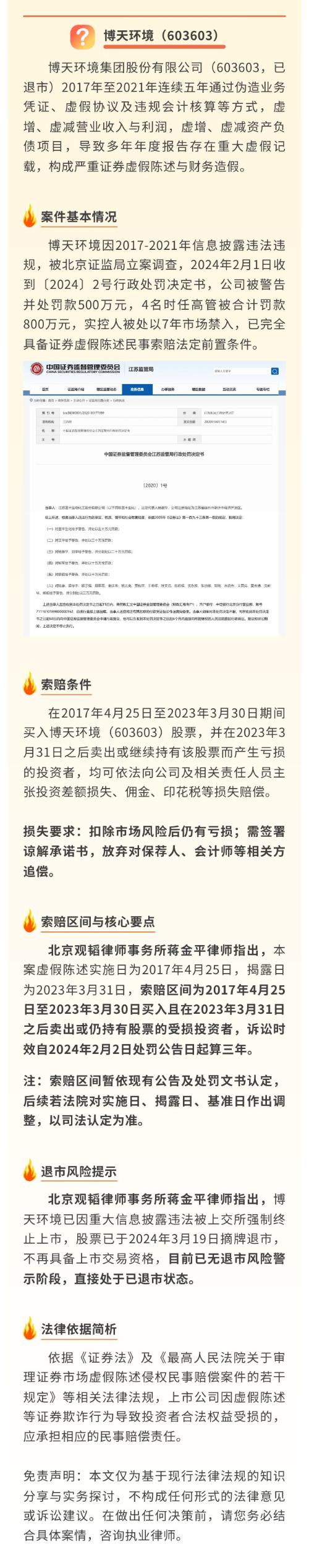 退市博天信披违规可索赔,投资者抓紧登记