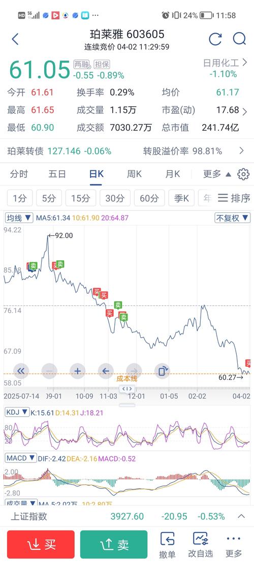 $珀莱雅(SH603605)$下跌趋势中,还没止跌,估计到45才能企稳,走横盘