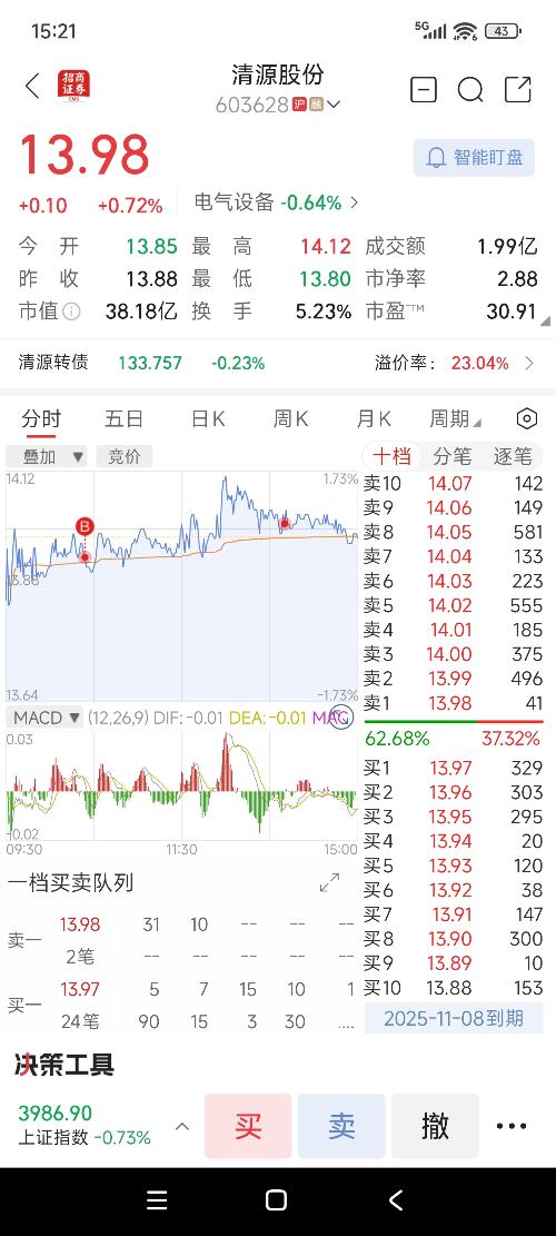 红彤彤地百灵鸟 更新于 10-31 12:30 45次浏览 $清源股份(SH603628)$光伏板块赚钱的跌,亏钱的涨,这就是大a 13