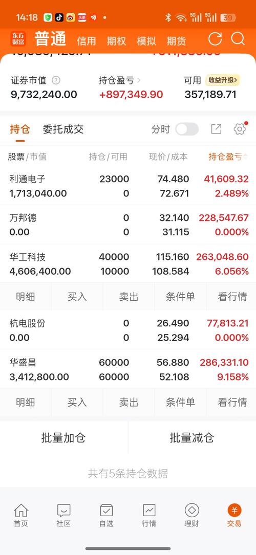利通电子$利通电子(SH603629)$正常调整这个位置洗洗更好后续有望继续走高。 华工科技$华工科技(SZ000988)$早盘低开高涨震荡洗洗拿到预期为止 华盛昌$华盛昌(SZ002980)$盘中震荡上升承接良好按照自己的计划执行 以上所涉内容及个股,仅代表个人观点,不构成任何投资建议,买卖自负,盈亏自负#炒股日记#