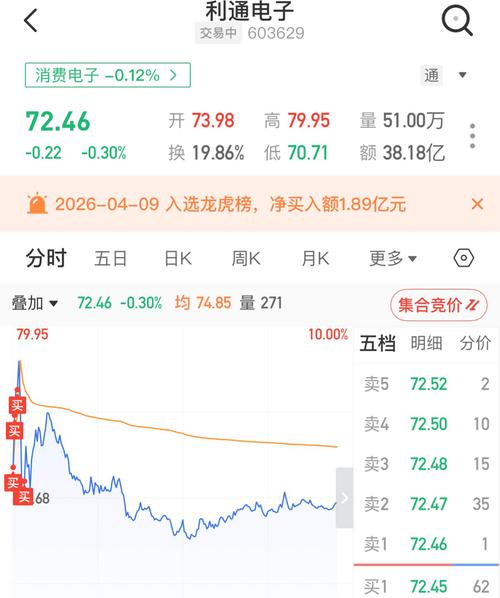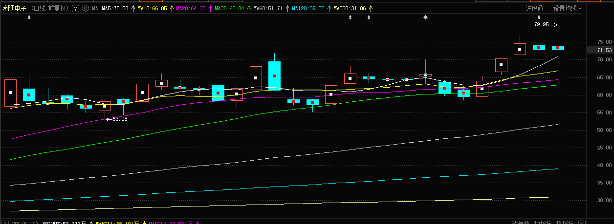 $利通电子(SH603629)$卖飞了72元完全卖飞了,这股最少能到100坚定看多!!!就算卖飞也看到100。我从25元拿到72元认识我的人都知道我坚决看多利通