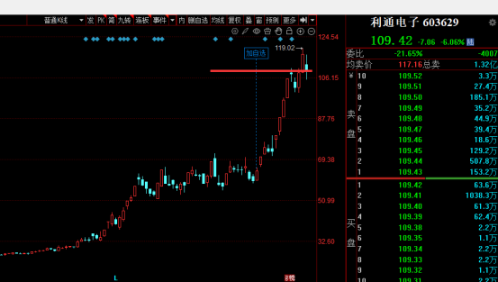 $利通电子(SH603629)$明天开盘就跑是你最后的机会 该股近3个月股价从33.10元最高涨至119.02元,涨幅超230%,近一年涨幅近400%, 风险太高马上跑