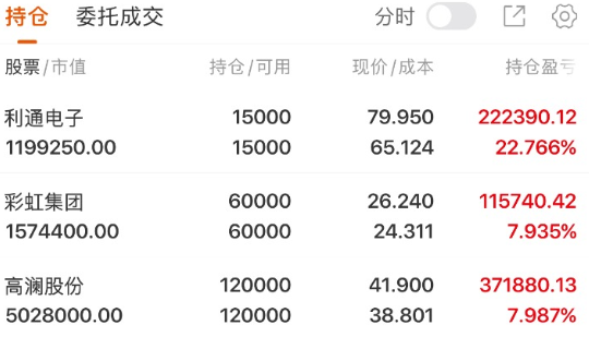 目前持仓: $利通电子(SH603629)$:潜伏多日还是不负众望成功拿下,还好盟主坚定信念 $晶科科技(SH601778)$:昨日趋势还不错今日开盘果断进场博弈成功拿下,再次验证盟主实力 $盛新锂能(SZ002240)$:早盘冲高于均线上方震荡徘徊,今日一进一还是有不错的预期滴,耐心等待即可 早盘出局:南京医药神剑股份二六三 (个人观点,仅供参考,据此操作,责任自负)#炒股日记#...