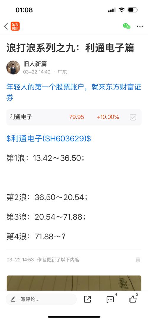 $利通电子(SH603629)$ 第1浪:13.42~36.50; 第2浪:36.50~20.54; 第3浪:20.54~?