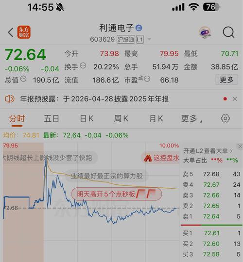 $利通电子(SH603629)$筹码之王,无限猖狂……我是3月26号,66块上车的,现在还说接盘吗?每天实盘,就是这么拽,你能怎么样?